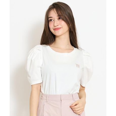 さりげないロゴがポイントのロゴ刺繍タックスリーブTシャツ【Design】・シンプルな中にさりげないロゴ刺繍が映えるTシャツ。・タックを施したスリーブデザインが立体感を生み、カジュアルすぎず女性らしい印象に◎・ゆとりのあるシルエットで、抜け感のある着こなしが一枚で叶います♪・デイリーコーデに取り入れやすく、幅広いスタイリングに活躍するアイテムです!【Fabric】・やわらかく肌なじみの良い素材を使用し、快適な着心地に。・さらっとした風合いで、これからの季節にも着やすい一枚です。・ご自宅でお手入れが出来るのも嬉しいポイント♪・ホワイト、サックス、ブラックの3色展開となります。【Care】手洗い可能