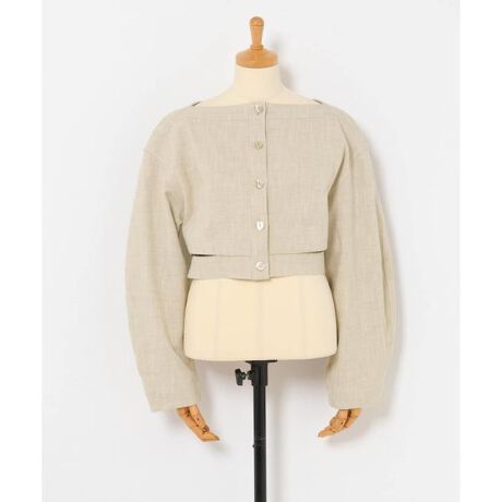 シルエットに動きを出すウエストベルトは、後ろに垂れるこだわりの設計で、バックスタイルのさりげないアクセントに。丸みのあるカーブ袖が女性らしい柔らかな雰囲気を演出しつつ、身長を問わずバランスよく着こなせるショート丈に仕上げました。