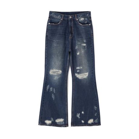 独特な光沢感とハリ感のあるコーティング加工を施したフレアデニムパンツ。