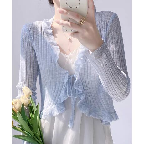 春 夏 秋 ショート丈 きれいめ 大人可愛い 紫外線対策 冷房対策 プチプラ 韓国 トレンド カジュアル ストリート Y2K KPOP シアー シースルー エアリー 透け感 ヘルシー ガーリー フェミニン 甘め