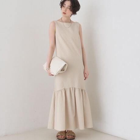 #ワンピース #マーメイドワンピ #夏ワンピ #フェミニン #ノースリーブ #上品 #ベージュ #ブラウン #ブラック #さらっと素材 #大人の装い #リゾートスタイル #きれいめカジュアル #ワードローブ #着回し