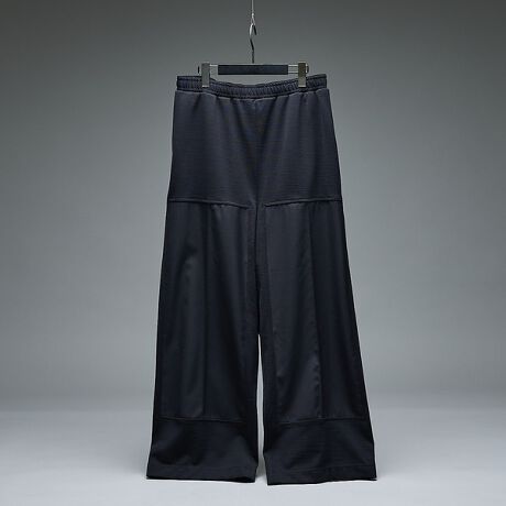 ジャージ素材をメインに構成し、膝の部分に同シリーズの布帛素材のものを組み合わせたデザイン性の高いパンツ。
