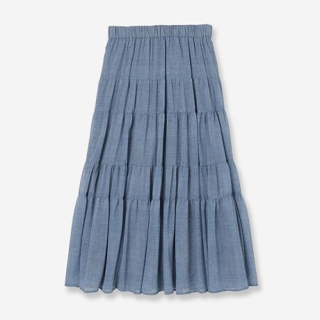 フェミニンさとカジュアルさを両立したデニム風ティアードスカート