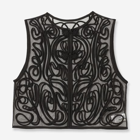 チュールに刺繍を施した繊細で立体的なモチーフが存在感を放つジレ。
