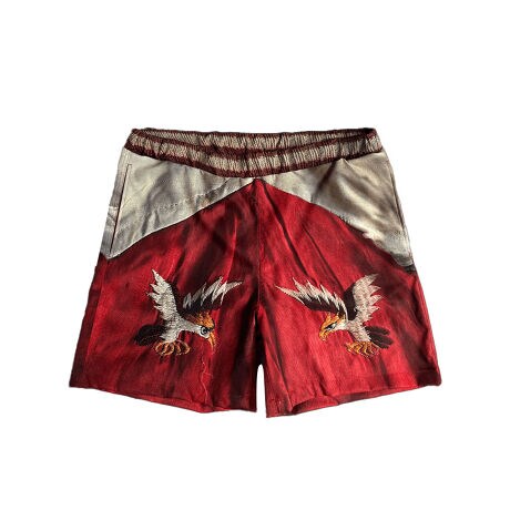 大胆なイーグル刺繍が目を惹くデザインがプリントされた、存在感抜群のショートパンツ。