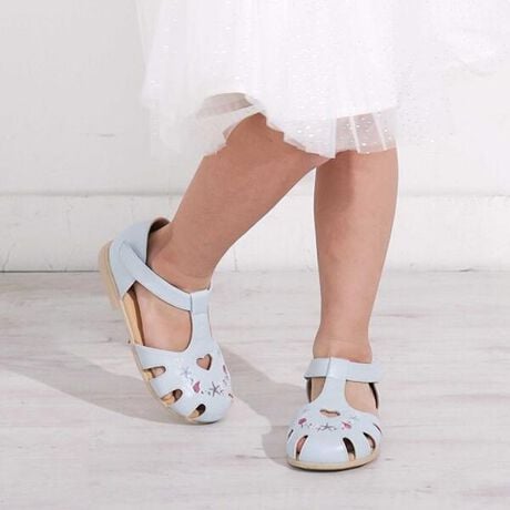 フロントにあしらった刺しゅうがぱっと目を引く、かわいさ満点のグルカサンダル。