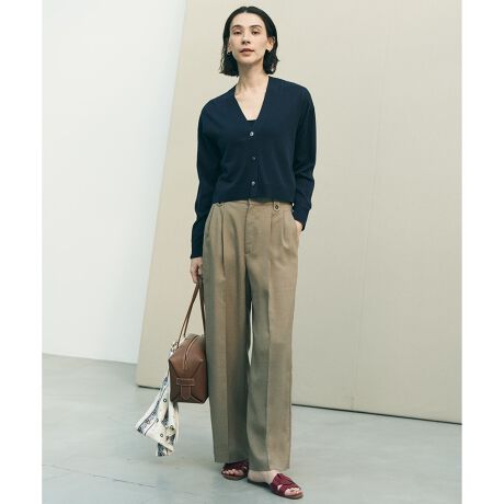 ■デザイン麻のようなドライタッチと軽い着心地が夏に最適なタックワイドパンツ。センタープレス入りで、ラフになりすぎずきちんと感のある着こなしが叶います。ボタン付きのベルトループが、インスタイルのさりげないアクセントに。後ろのウエストにはゴムギャザーを入れているので、リラックスしてご着用いただけます。※ベージュ(033)のみ裏地が付いております。