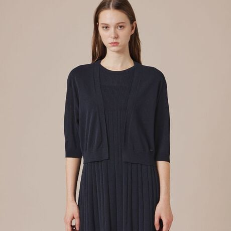MACKINTOSH LONDONの定番モデル『BrayBolero/ブレイボレロ』です。ドルマン風のゆったりしたアームホールに肘が隠れる上品な袖バランスがポイントで、ワンピースの上にさらっと羽織れる便利なアイテムです。シームレスで快適な着心地を実感していただけます。同素材のワンピース(品番:G5J12709)とアンサンブルで着用していただけます。