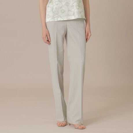 裾に向かってすとんと落ちるストレートシルエットにコンパクトなヒップまわりですっきりした印象に仕上げたストレートパンツです。オフィスから日常使いまで、さまざまなスタイリングをお楽しみいただけるアイテムです。裏地無しでも透けにくく、暑い季節にも快適に着用していただけます。同素材のワイドパンツ(品番:G5R85750)もご用意しております。※サイズについては、仕様書のサイズを記載しており、多少の誤差が出る場合がございます。