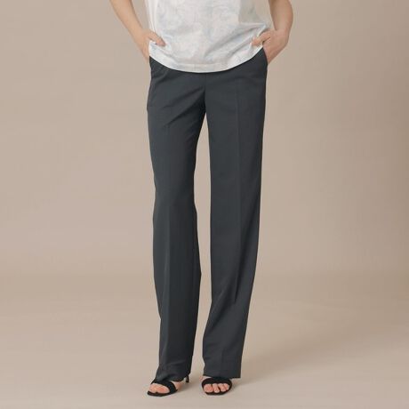 裾に向かってすとんと落ちるストレートシルエットにコンパクトなヒップまわりですっきりした印象に仕上げたストレートパンツです。オフィスから日常使いまで、さまざまなスタイリングをお楽しみいただけるアイテムです。裏地無しでも透けにくく、暑い季節にも快適に着用していただけます。同素材のワイドパンツ(品番:G5R85750)もご用意しております。※サイズについては、仕様書のサイズを記載しており、多少の誤差が出る場合がございます。