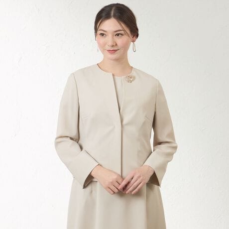 ・同素材ワンピース(商品番号|V5J04735)と合わせることで、きちんと感のあるスタイルが完成