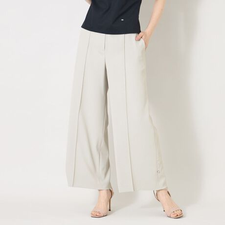 センタープレスが入ったワイドシルエットで、ヒップまわりをすっきり見せる設計。