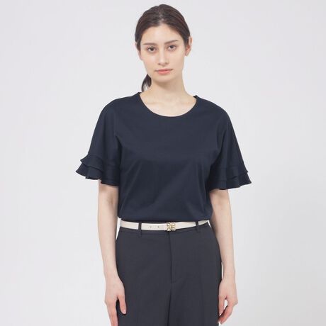 シンプルなデザインながら、袖に施したフリルで華やかな印象になります。