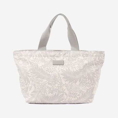 レインドロップ柄とリーフ柄をプリントしたタフタ生地を使用したトートバッグです。撥水性のある生地を使用しており、上部には防水仕様の止水ファスナーが付いています。非常に軽量で畳めばフラットになるので、普段使いは勿論、旅行やアウトドアにも便利です。中には大きめポケット、反対面にはしきり付ポケット、サイドには水筒やペットボトル等を立てられるループが付いています。お揃いの柄のコート(G5A07754、G7A07754)、ハット(G5503745)、折畳傘(G5W03743)もございます。