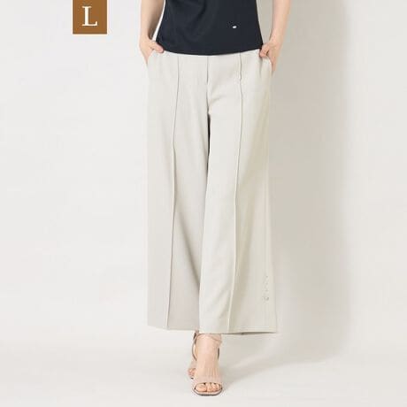 センタープレスが入ったワイドシルエットで、ヒップまわりをすっきり見せる設計。