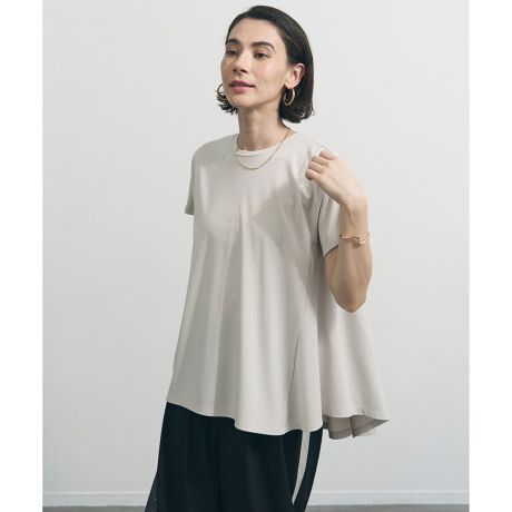 ■デザイン脇から裾にかけてたっぷりと入るドレープフレアが美しく、シンプルながらも華やかなスタイルに。袖に切り替えがないシームレスなデザインで、動きやすく快適な着心地。裾の前後差によりボトムとのバランスを取りやすく、様々なボトムと組み合わせていただけるアイテムです。