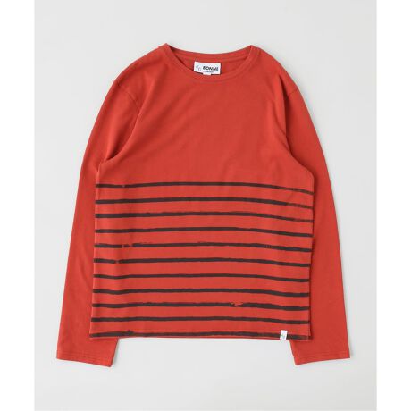 ゆったりとしたボートネック、柔らかな梳毛コットン素材、そして独特のストライプ柄が特徴です。