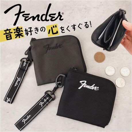 【Fenderが刻む、男のミニマル】伝説の楽器ブランドが手がける、こだわり派メンズのための超軽量コンパクトウォレット。【Fender】1946年、レオ・フェンダー氏によって南カリフォルニアで創設された世界的楽器製造メーカー。【Fender刺繍ロゴの存在感】フロントに大きく輝くFender刺繍ロゴが、さりげなく個性を演出するウォレット!【L字で開くスマートさ】ぐるりと大きく開くL字ファスナー構造で、小銭もカードもひと目で確認できる高い利便性◎【豊富な収納で整理上手に】カードポケットと小銭入れを備えた機能的な内装で、財布の中をスッキリ整理できる設計。【手のひらサイズの携帯性】手のひらに収まるミニマムサイズで、ポケットにすっぽりなじむ抜群のコンパクトさが魅力。【軽さで選ぶナイロン素材】丈夫で軽量なナイロン素材を採用し、毎日の持ち歩きでも負担を感じさせない軽快さ〇【ブランドストラップの遊び心】Fenderロゴ入りストラップが付属し、バッグやループへの装着も楽しめるお洒落な仕様♪