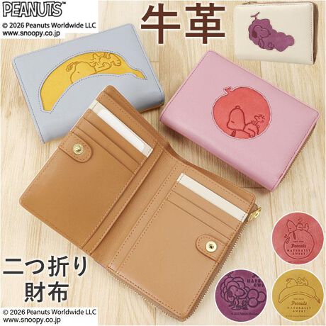【スヌーピーと本革の出会い】フルーツ柄のスヌーピーがキュートな、牛革製L字ファスナーの二つ折り財布。【スヌーピーのキュートさ】フルーツモチーフのスヌーピーデザインが、財布を開くたびに気分を上げてくれる愛らしさ♪【本革ならではの上質感】牛革外装とコットン内装の組み合わせが、手に取るたびに感じる上品な質感を生み出す逸品。【コンパクトな持ち運びやすさ】スリムなサイズで、どんなバッグにもすっと収まる使いやすさ〇【L字でサッと取り出せる】L字ファスナーでパッと大きく開く設計は、中身が一目で見渡せて取り出しやすさ抜群◎【カード・コイン・札が揃う】カード入れ・コイン入れ・札入れをひとつにまとめた、毎日の支払いをスムーズにする!