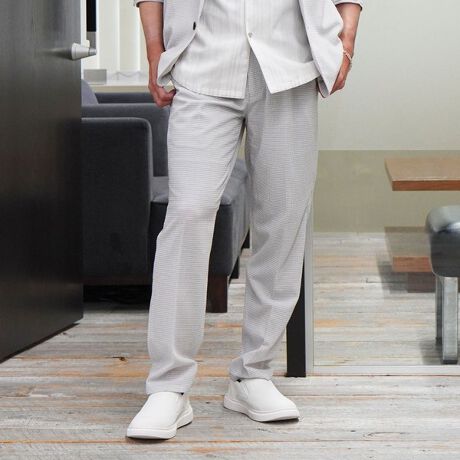 スラックスデザイン仕様のイージーパンツとなります。素材感を活かしミニマルなデザインとなっています。同素材でジャケット「メーカー品番:6266-3733」展開もありますのでセットアップでのスタイリングもおすすめです。