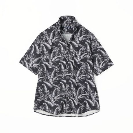 衿を立てても開いても着用出来るスタンドカラー半袖シャツです