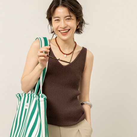 ・前後2WAYで着用でき、その日の気分やスタイリングに合わせてネックラインの見え方を変えて楽しめるタンクトップ