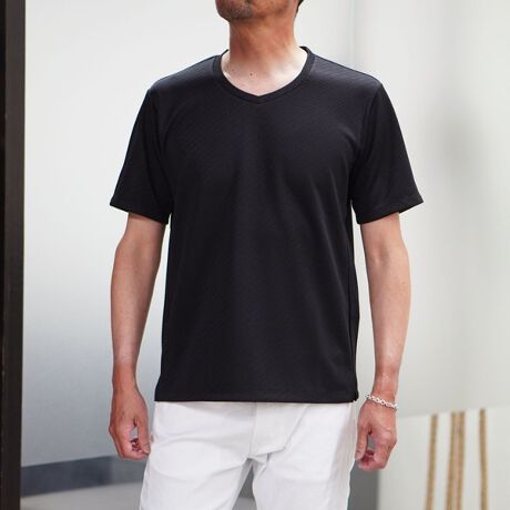 2種類のポリエステル糸で凹凸感を表現したジャカード素材。合繊の為、ハリ感があり。速乾性と防シワ性にも優れています。