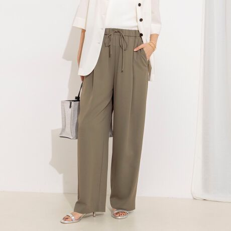 ・ウエストにドローコード付きのイージーセミワイドパンツ