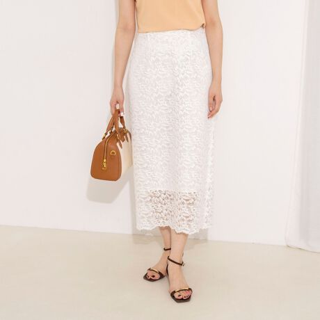 ・手洗いできるコードレース素材を使用したミディ丈のタイトスカート