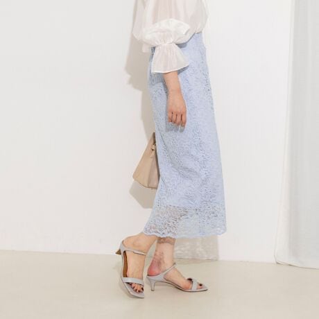 ・手洗いできるコードレース素材を使用したミディ丈のタイトスカート