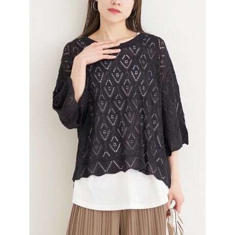 涼しげな透かし編みのアクリルニット素材×サラッとした肌触りの綿ポリ素材。