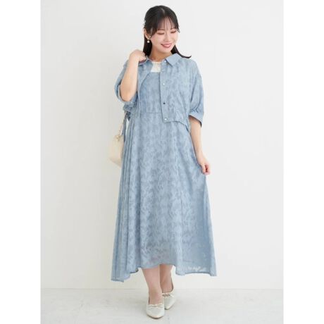 シアー素材の花柄ジャガードがシーズンライクな印象のシャツとキャミワンピースSET