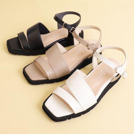 ・指先と甲を押さえるダブルストラップとアンクルストラップで安定感があり歩きやすい◎
