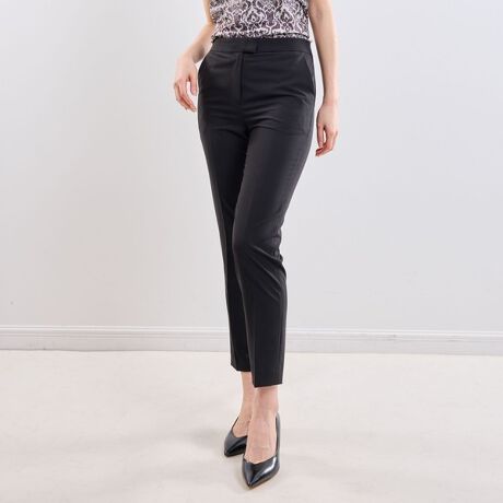 初夏におすすめなセットアップスーツのパンツ。定番の9分丈テーパードシルエットがすっきりとした足元を演出します。さらっとしたストレッチ性のある生地を使用しているため、湿度が高く汗をかきやすい夏にもストレスフリーな着心地を実現します。ジャケットと合わせるのはもちろん、オーバーサイズのシャツと合わせたスタイリングもおすすめです。