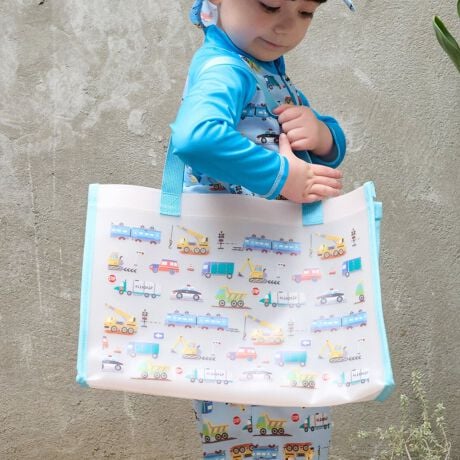 暑い季節のアクティビティシーンで活躍するプールバッグです。ピンクにはハイビスカスを中心とした南国の植物にキリン、お猿さん、オウム、マーブルキャットが隠れています。紺はマリンスポーツを楽しむいろんな恐竜達の総柄。サックスは電車や働く車など、さまざまな車両が描かれた乗り物柄です。幅広のマチつきでしっかりと自立するため、荷物の収納もスムーズに行えます。内側にお名前を記入できるタグつき。≪重さ≫F/約204g