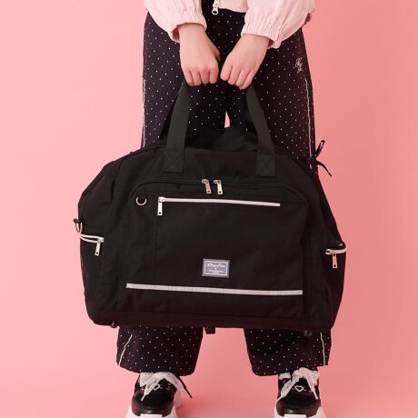 シーンに合わせて持ち方を変えられる、手持ち・ショルダー・リュックの3WAY仕様のボストンバッグ。1〜3泊程度の旅行やお出かけにちょうどいい、頼れる大容量サイズです。リュックとして使用する際は、新幹線や観光バス、飛行機の通路でも邪魔になりにくい幅に設計。更に今回より、スーツケースのハンドルに固定できる背面スリットも追加したので、スーツケースの上に置く際も安定しやすくなりました。一般的な飛行機内持ち込みサイズ(3辺合計115cm以内)にも対応しています。※重量制限は各航空会社規定に準じます。本体には撥水加工をほどこしているため、急な雨でも中身をしっかりガード。大切なお洋服を安心して持ち運べます。シンプルで大人っぽいデザインに、シリコンワッペンやオリジナルファスナープル、キラッとしたファスナーをアクセントとしてプラス。さりげない可愛さを効かせた、機能性もデザイン性も妥協しない一品です。※底鋲は四隅と真ん中で合計5個ついております。【容量:本体 約44リットル、ポケット 約4リットル】≪重さ≫F/約1050g