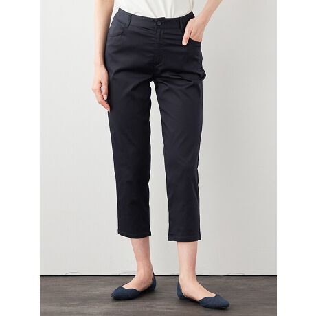 [型番:6251406]品よく光沢感のあるサテンストレッチのパンツです。洗練されたテーパードシルエットはお出かけにもデイリーなスタイルにも幅広く活躍してくれます。ウエストの後ろはゴム仕様になっており、コンフォートな着心地に。初夏のCOOLタッチな肌触りが気持ちの良い1枚です。