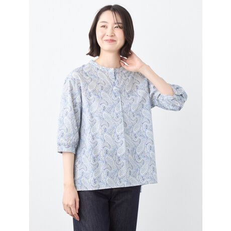 [型番:6251204]鮮やかなカラーリングのペイズリープリント生地で仕立てたチュニックブラウスです。綿100%の綺麗な生地をたっぷり使用し、腰回りをふんわりとカバーするシルエットになっています。衿元はキーネックデザインでお顔回りはスッキリと見せます。流行に左右されないペイズリー柄は優雅で大人っぽいコーディネートにぴったりです。