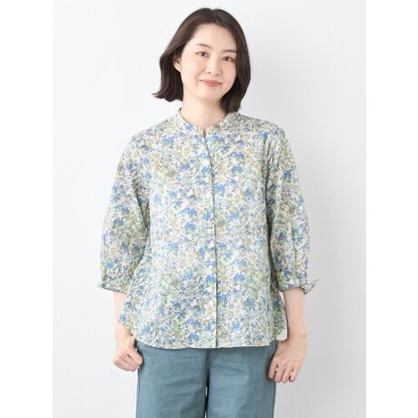 [型番:6251206]カラーハーモニーが美しいフラワープリントのブラウスです。綿100%の凹凸感のある素材は肌離れが良くシワも気にせず着用いただけます。程良くゆったりとしたシルエットにバンドカラーと8分袖丈でスッキリ感も演出しました。ふんわりと羽織れるデザインなので初夏に向けて着回しに便利な1枚です。