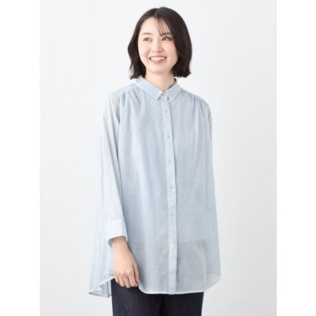 ムラ染シャツ衿ブラウス