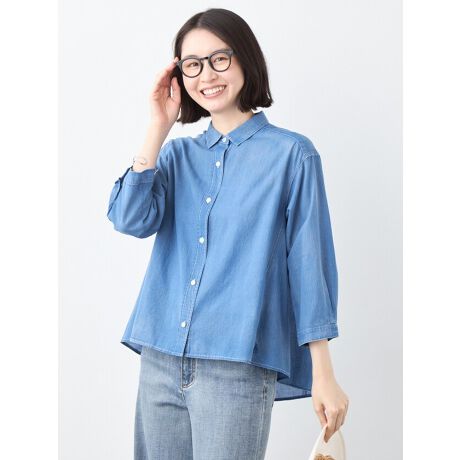 [型番:6251212]エアリー感のある柔らかいデニム素材を使用したシャツです。刷毛を使って職人が加工をしたこだわりのアイテム。全て手作業のため1枚1枚に味わいのある表情が出ます。程よいシアー感とふんわりとしたAラインシルエットはストレスなく着用いただけます。裾に入れたエレメントのロゴ刺繍がポイント。軽さを備えた新しいデイリーデニムシャツです。