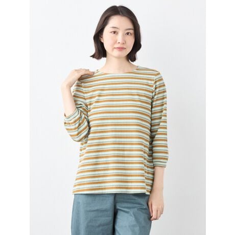 [型番:6251724]凹凸感のあるワッフル素材に多色のボーダーを編み上げたカットソープルオーバーです。さらりとした柔らかな綿素材で肌触りも良く、シーズンレスで活躍する生地感です。ワッフル地に多色のボーダーをのせることで、単調にならず、どこかニュアンスのある一枚に仕上げました。程よくゆとりがあるAラインシルエットで着心地が良く、バランスの取りやすい丈感が様々なボトムスに対して汎用性が高い一品です