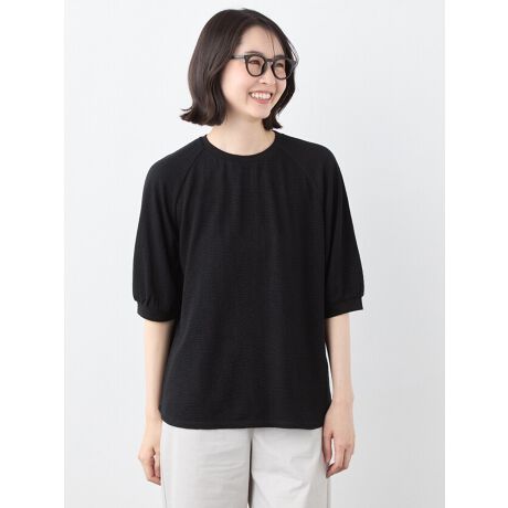 [型番:6251725]凹凸感のある楊柳素材を使用したカットソープルオーバーです。カットソー素材ながらブラウス見えして、着心地の良さと上品な着こなしを兼ね備えたアイテムです。表面が凸凹している素材なので、シワも気にならずお手入れしやすいのも嬉しいポイント。ラグラン袖で肩馴染みが良く着るほどにやわらかくなじみ、リラックスした着心地を叶える便利な一着です。軽やかで通気性がよく、汗ばむ季節も快適に過ごせます。