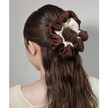 さり気なく艶めくサテン生地が、うしろ姿に華やぎをプラスするシュシュ。バイカラーのデザインが目を惹き、コーデのアクセントになります。※ATTENTION※■微細なキズや製造ムラはすべての商品に含まれます。[型番:DG230093H]