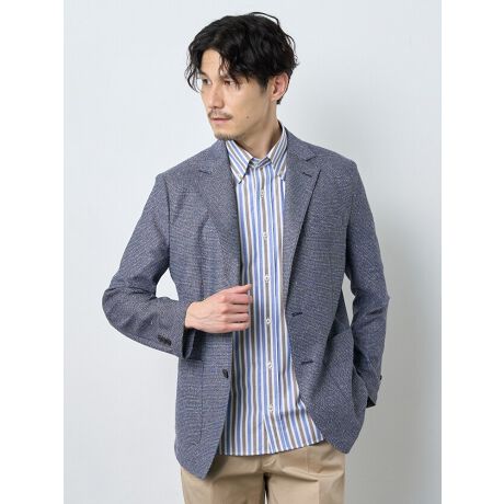 【 シックなサマージャケット 】リネンブレンドのポリエステルジャージ生地を使用したサマージャケット。日本有数の繊維産地である「尾州産」ならではの杢糸の繊細なミックス感の色合いと、凹凸のある編み組織が魅力的。肩パットが無い柔らかな着心地の肩回りと裏無し仕様で、袖裏も無く、前身返しのみに裏地がついている、より軽快で涼し気な着心地へ。今シーズンより内ポケットの仕様を変更。入り口の角度を斜めにすることでより物の出し入れが容易に。もう片方のポケットは隠しファスナーを施した安心設計に改良。