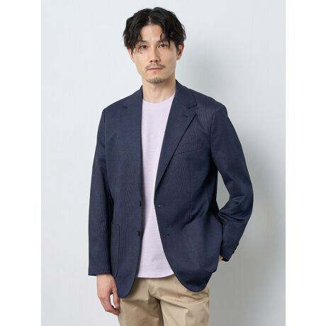 【 軽快に装う夏のコンバチジャケット 】リネンブレンドのポリエステルジャージを生地を使用したサマージャケット。日本有数の繊維産地である「尾州産」ならではのコードレーンを模した爽やかな縦畝、サラッとしたドライタッチな質感が魅力的。衿を立てても着用可能なデザインで、ラペルの裏側にはタブを追加。肩パット無しの柔らかな着心地と裏無し仕様で、軽快な着心地に。今シーズンより内ポケットの仕様を変更。入り口の角度を斜めにすることでより物の出し入れが容易に。もう片方のポケットは隠しファスナーを施した安心設計に改良。