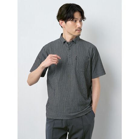 [型番:7251735]【機能よし、使い勝手よしポロシャツ】凹凸のあるサッカー素材を使用した半袖ポロシャツ。軽さ、肌触りの良さ、ストレッチ性、速乾性など、機能面に優れた1着。カジュアルシーンでもビジネスシーンでも使える汎用性も魅力。衿はボタンダウン仕様で、上品な着こなしにマッチ。