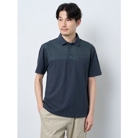 [型番:7251733]【 オリジナリティあふれるポロシャツ 】薄地で清涼感のある鹿の子を使用し、前身部分を幾何学柄のパッチワークプリントで切り替えた半袖ポロシャツ。繊細で他にはないオリジナルな柄表現がポイント。シャツ地のパイピングやピスネーム使いなど、ディテールにこだわったアイテム。