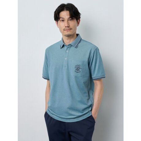 [型番:7251743]【 PEANUTS公式ライセンスデザインポロシャツ 】スヌーピーが登場する、世界中から愛されるコミック「PEANUTS」の公式ライセンスデザインを用いた、清涼感のある鹿の子を使用した半袖ポロシャツ。ビーチパラソルとチェアでリラックスするスヌーピーのイラストを刺繍。衿・袖口部分の編立てパーツは配色ライン入りでスポーティーな印象に。遊び心ある1着でプレゼントにもおすすめ。