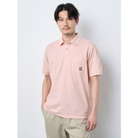 【 PEANUTS公式ライセンスデザインポロシャツ 】スヌーピーが登場する、世界中から愛されるコミック「PEANUTS」の公式ライセンスデザインを用いた、清涼感のある鹿の子を使用した半袖ポロシャツ。一緒にアイスクリームを食べる様子が可愛らしいスヌーピーとウッドストックのイラストを刺繍。衿・袖口部分の編立てパーツは配色ライン入りでスポーティーな印象に。遊び心ある1着でプレゼントにもおすすめ。